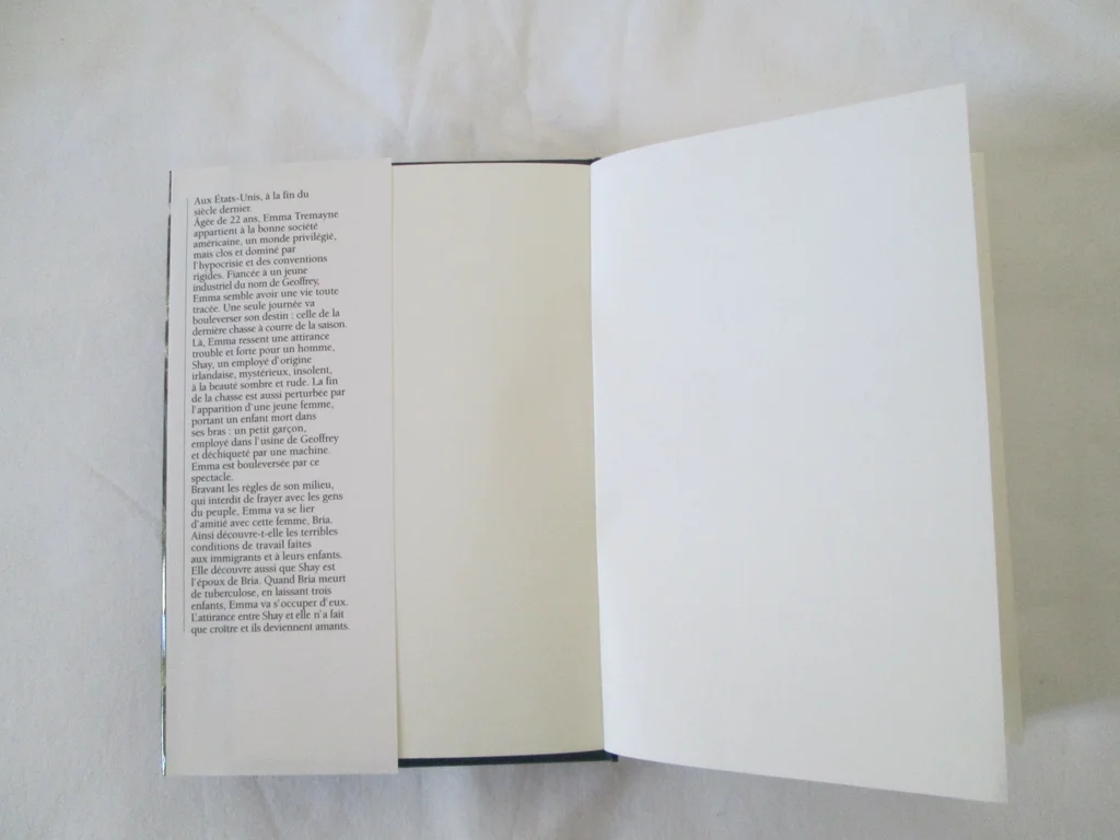 Vends livre La Passion d'Emma de Penelope Williamson. Comme neuf. "Aux États-Unis, à la fin du siècle dernier. Âgée de 22 ans, Emma Tremayne appartient à la bonne société américaine, un monde privilégié, mais clos dominé par l'hypocrisie et des conventions rigides. Fiancée à un jeune industriel du nom de Geoffrey, Emma semble avoir une vie toute tracée. Une seule journée va bouleverser son destin : celle de la dernière chasse à courre de la saison. Là, Emma ressent une attirance trouble et forte pour un homme, Shay, un employé d'origine irlandaise, mystérieux, insolent, à la beauté sombre et rude. La fin de la chasse est aussi perturbée par l'apparition d'une jeune femme, portant un enfant mort dans ses bras : un petit garçon, employé dans l'usine de Geoffrey et déchiqueté par une machine. Emma est bouleversée par ce spectacle. Bravant les règles de son milieu, qui interdit de frayer avec les gens du peuple, Emma va se lier d'amitié avec cette femme, Bria. Ainsi découvre-t-elle les ter [Description tronquée]