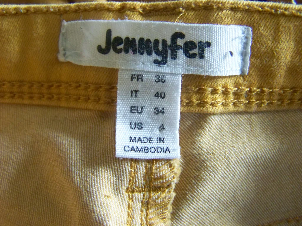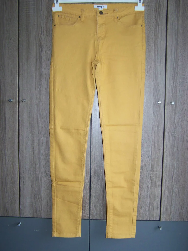 Jean slim couleur moutarde de la marque Jennyfer, en très bon état. Matière stretch, confortable et qui épouse bien la silhouette. Coupe moderne, parfait pour apporter une touche de couleur à une tenue. Aucun défaut, prêt à porter. État : Très bon état Marque : Jennyfer Taille indiquée : 36 Coupe : Slim / skinny Particularité : Stretch (matière extensible, très confortable) Style : 5 poches, couleur moutarde tendance 📏 Mesures (prises à plat) Taille : 35 cm Longueur totale : 95 cm Composition : 72% coton 25% polyester et 3% Elastane