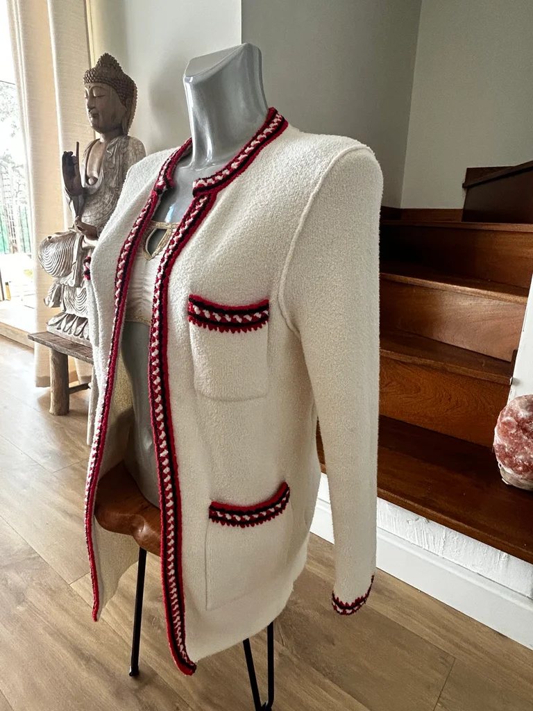 Indispensable du dressing, ce gilet long Sandro est d'une douceur et d'un confort absolus. Une coupe fluide qui s'adapte à toutes les tenues. • Coupe : Cardigan ouvert, longueur confortable (76 cm). • Matière : 61% Coton, 38% Polyamide, 1% Élasthanne. Belle qualité de maille. • État : Tres Bon état général mais 👉À noter une légère tache jaunie à l'arrière au niveau de l'épaule (voir photo). Elle est peu visible porté, surtout avec des cheveux mi-longs/longs. Le reste est impeccable. • Taille : S. 👉 Mesures à plat : • Épaules : 38 cm • Longueur : 76 cm 📦 Envoi soigné depuis la Corse 🏝️. 📹 Pour une sécurité totale, je filme l'intégralité du processus d'emballage de A à Z avant l'envoi. #sandro #giletsandro #cardigan #maille #sandroparis #moderesponsable #chic #basique #corse