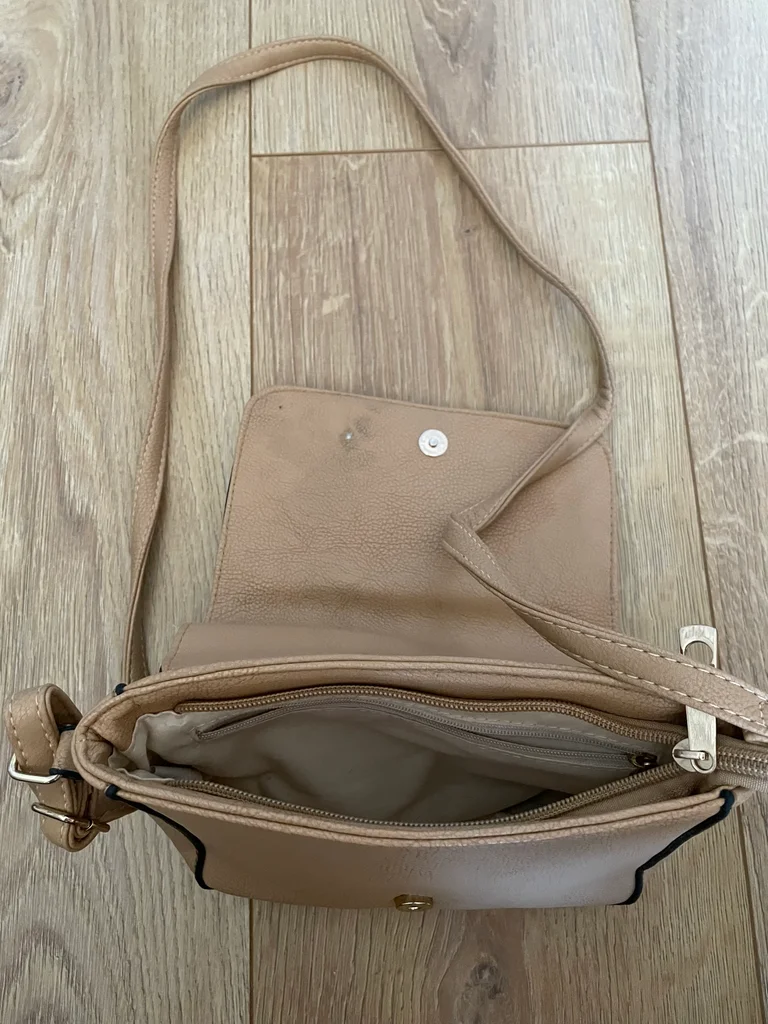 Sac bandoulière beige. Légèrement abîmé à l’intérieur voir photo.