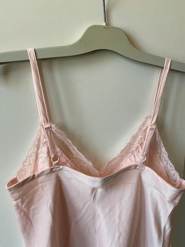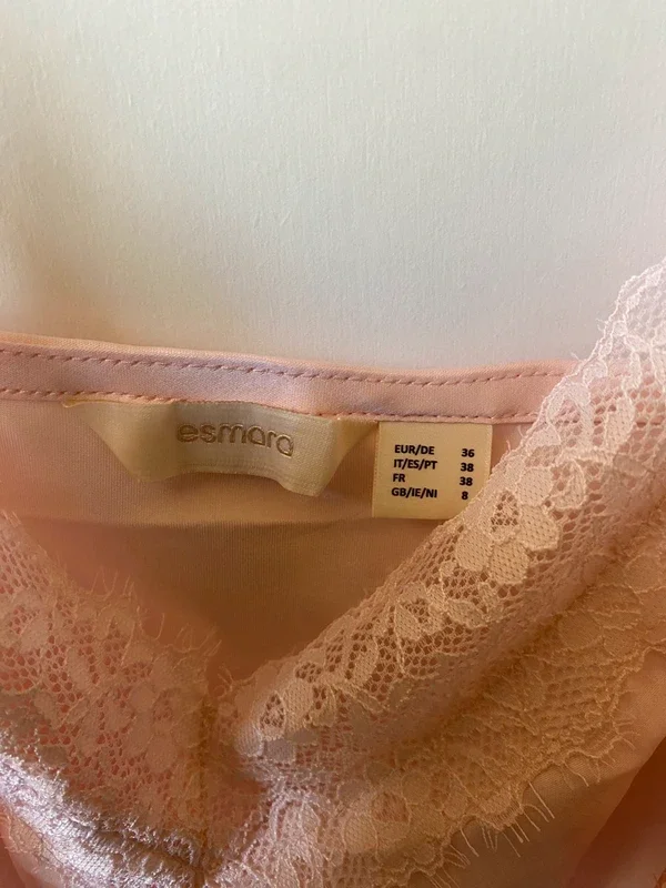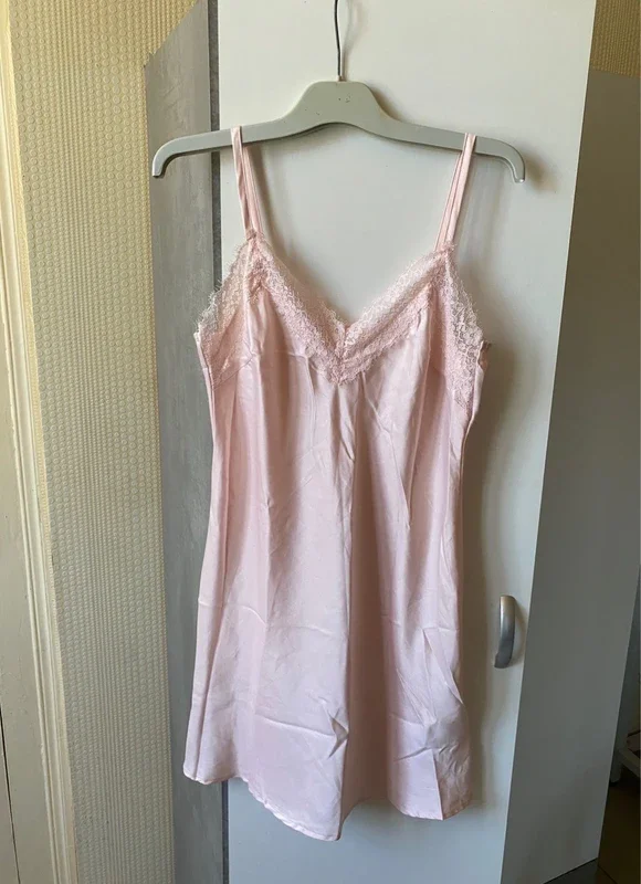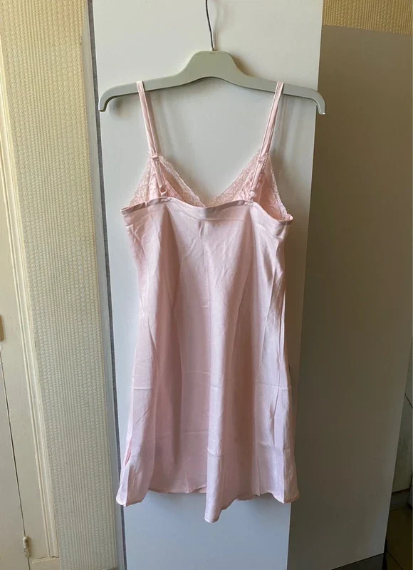 Très jolie nuisette satinée de la marque Esmara, Couleur rose pâle avec de délicates finitions en dentelle au niveau du décolleté. Bretelles fines réglables pour un ajustement parfait. Coupe fluide et féminine, idéale pour dormir ou comme pièce lingerie élégante. Détails : • Marque : Esmara • Taille : 38 ( France ) • Couleur : rose poudré • Matière : effet satin doux • État : très bon état • Envoi rapide et soigné Prix : 3€