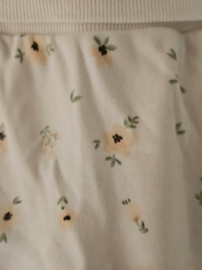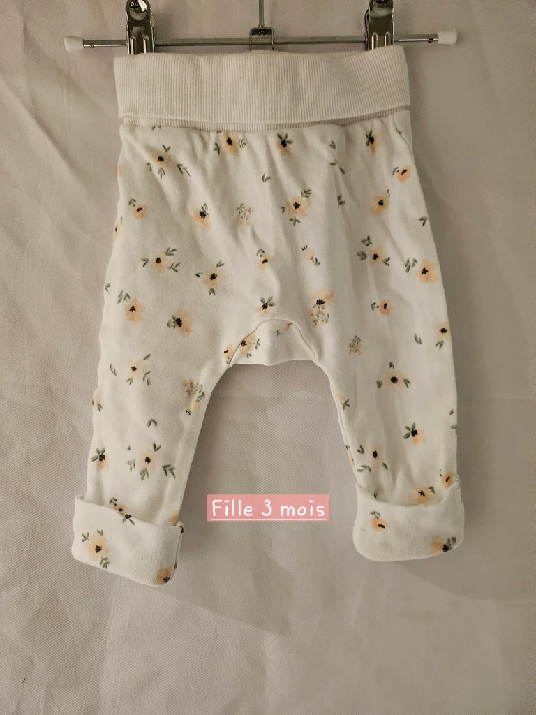 Pantalon coton blanc avec imprimés florales. Marque : Gemo Taille : 3 mois