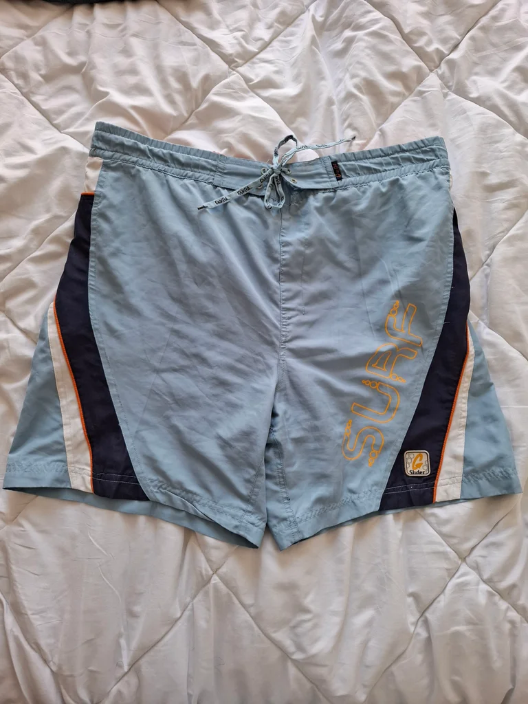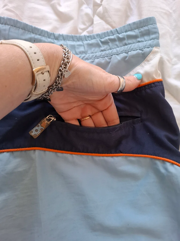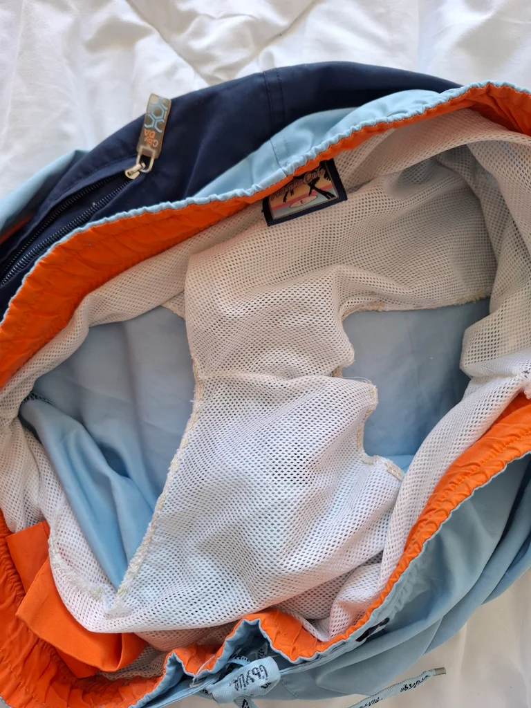 Short de bain pour homme, avec poche derrière et une secrétaire devant, filet intégré, taille L, taille 46cm, longueur 45cm entrejambe 15cm, bas du short 31cm. En parfaite état 🩷