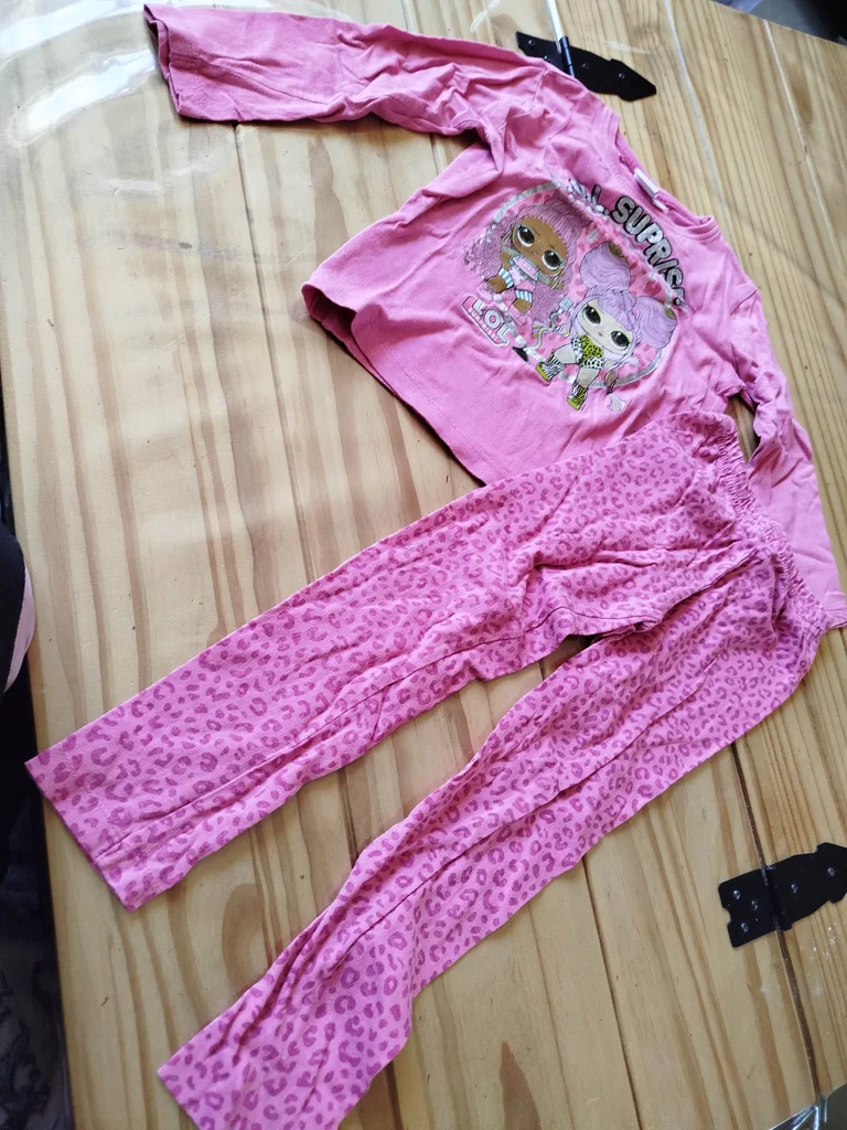 Pyjama 2 pieces composé d'un haut manche longue couleur rose motif LOL et d'un bas de pantalon rose tâche léopard marque Lol surprise taille 98/104