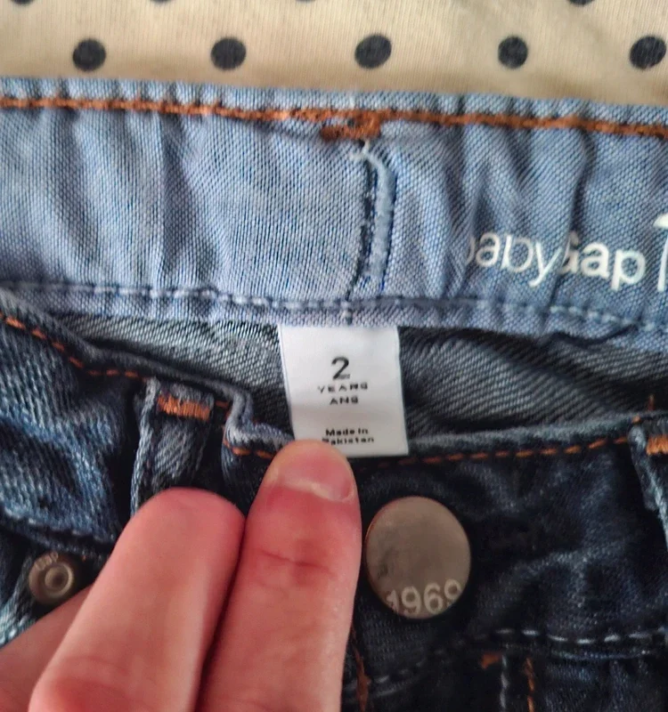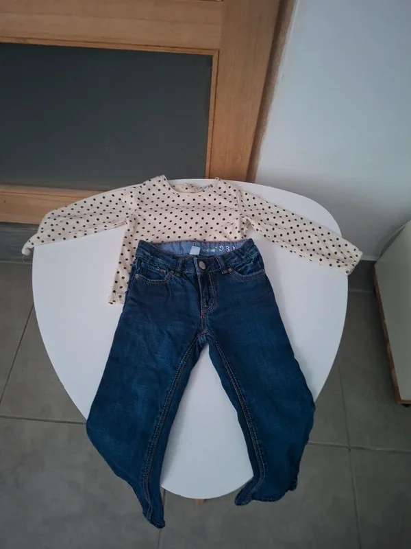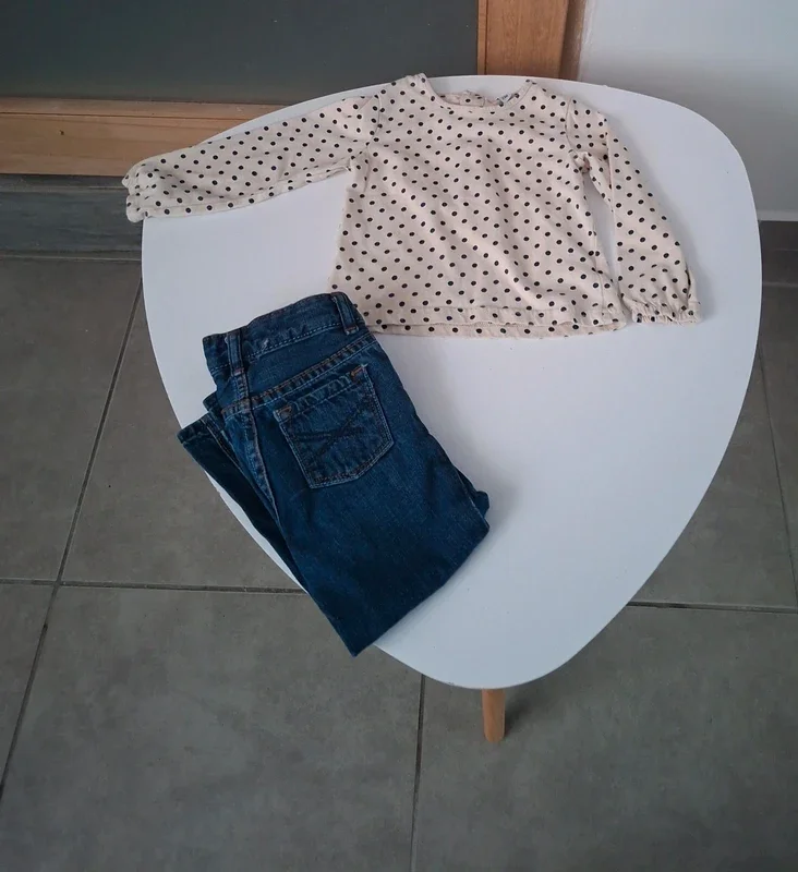 Très bon état Jean brut marque Baby Gap Haut beige à pois bleu marine