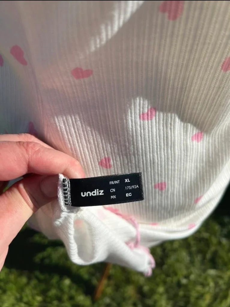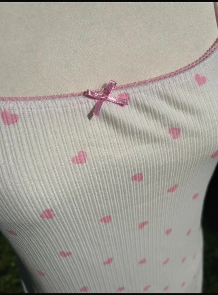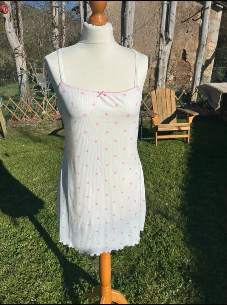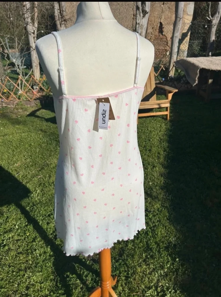 Nuisette Undiz Couleur blanche a motif petits cœurs rose Bretelles réglables Taille XL Neuve avec étiquette
