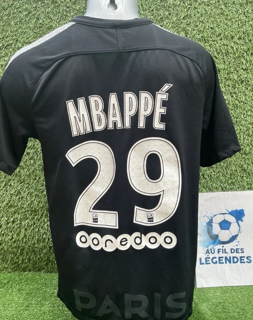 Bonjour Maillot Mbappé au PSG Occasion Pour homme Taille M Marque Nike Saison 2017/2018 Le maillot est en très bon état Pas de trou ou tâche à signaler sur le teeshirt Sponsor avant en excellente état Flocage joueur au dos en très bon état malgré de léger signe d’usure Les logos brodés sur la poitrine sont impeccable Maillot third des parisiens pour la saison 2017/2018