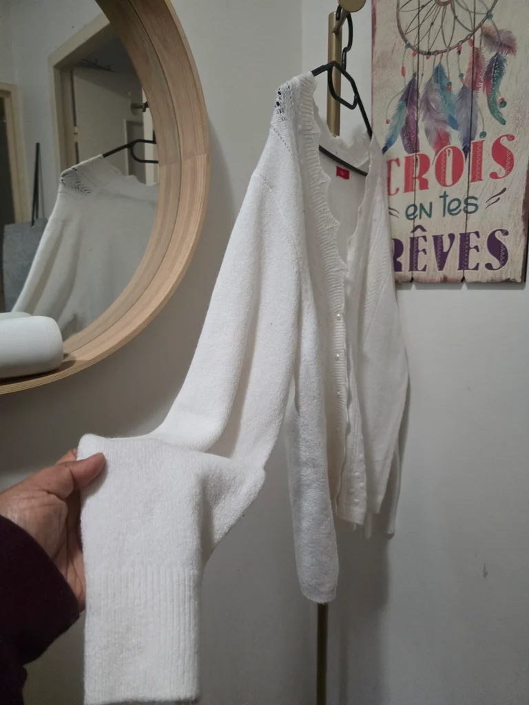 Très beau gilet blanc en taille L de la marque Tissaia, en très bon état