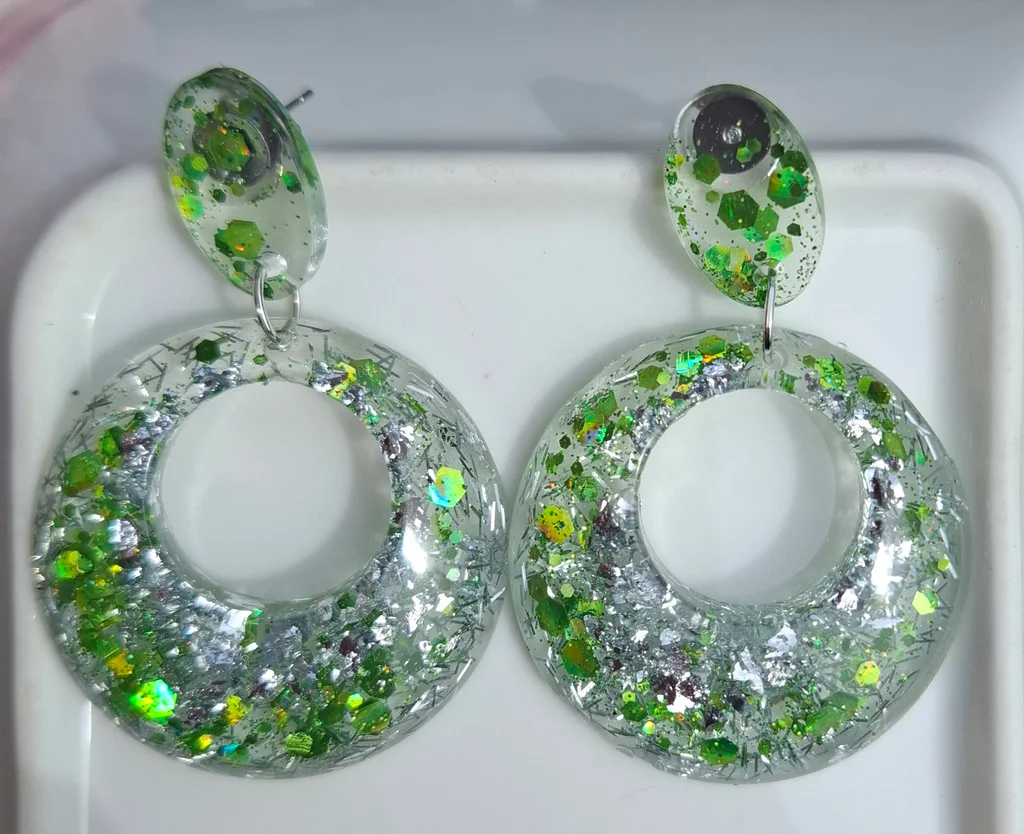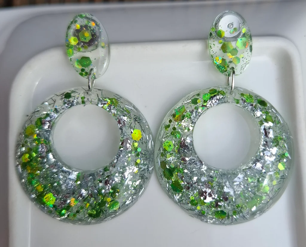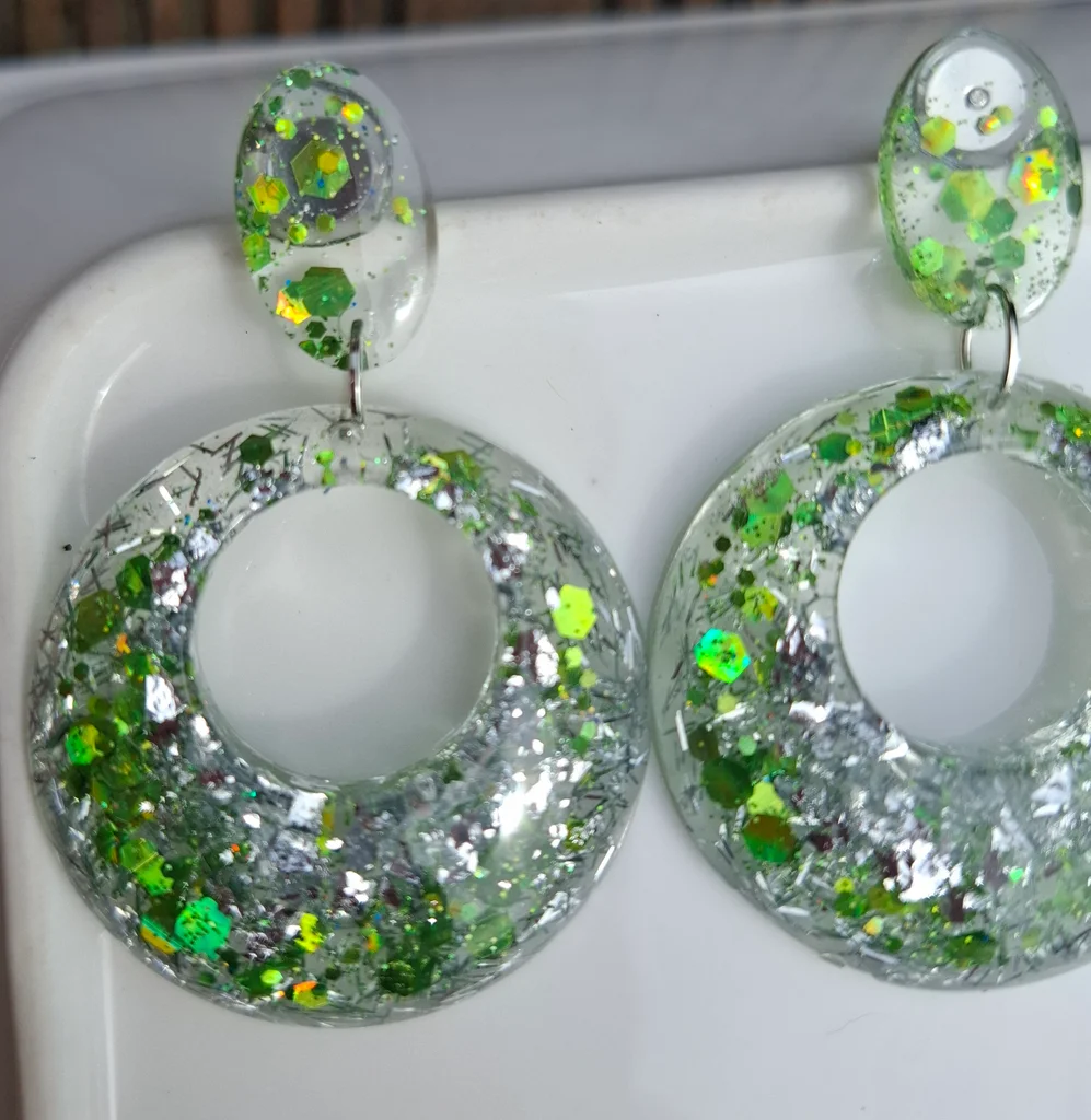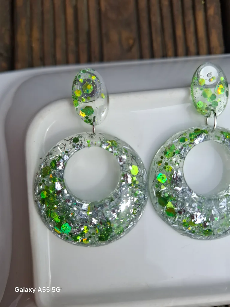 Plonge dans un univers végétal avec ces boucles d’oreilles aux nuances de vert éclatant 🌿✨ Elles évoquent la fraîcheur d’une forêt au petit matin, lorsque la lumière danse sur les feuilles encore couvertes de rosée. Les éclats verts et argentés rappellent la nature vivante : l’herbe, les feuillages, la lumière qui traverse les arbres… Chaque reflet capte l’énergie du vivant et apporte une touche de fraîcheur à ton style. Leur forme circulaire moderne et leur transparence subtile donnent une sensation de légèreté, comme une bulle d’air pur au creux de tes oreilles 💫 Chaque paire est unique, réalisée à la main avec soin.