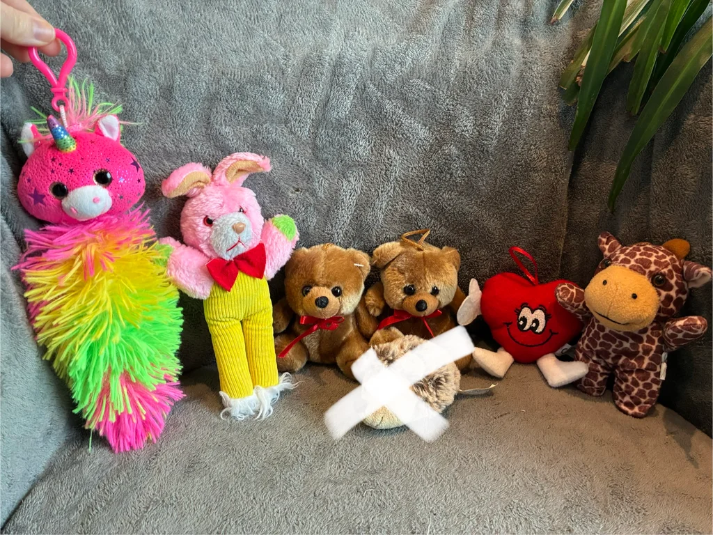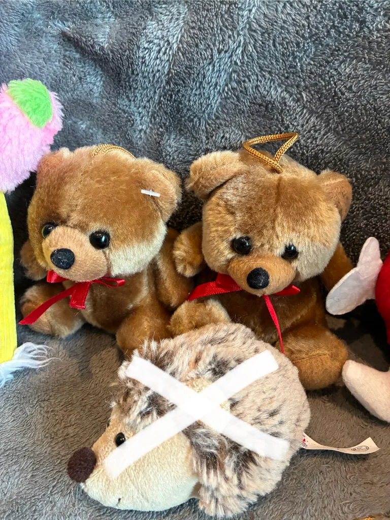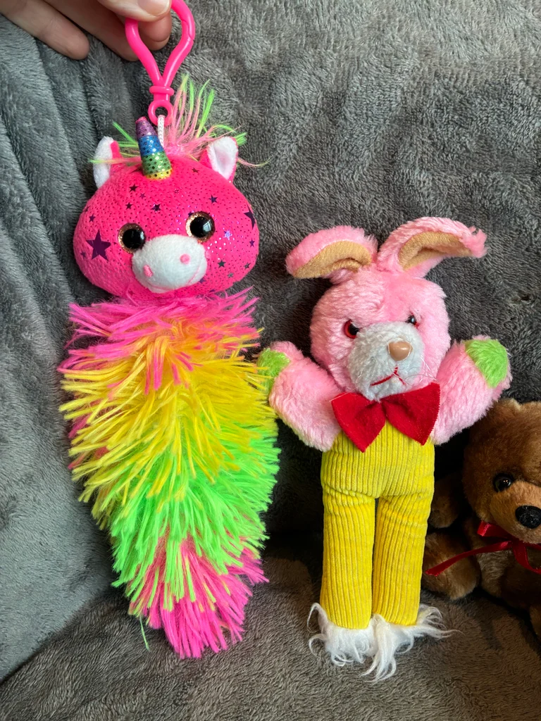 Lot de petites peluches Idéal pour une fête ou kermesse (d’autres lots dispo) 2 petits ours / 1 hérisson Spontex (vendu) / 1 cœur / 1 girafe / 1 lapin vintage (80’s) / 1 licorne toute douce avec queue et attachable (achetée à bagatelle) #stefetjuju51jeux maison non fumeurs bien d’autres choses dans mon dressing de nouveaux articles très régulièrement nombreux # dans mon profil pour faciliter vos recherches merci pour votre visite et belle journée ☺️ #peluche #lot