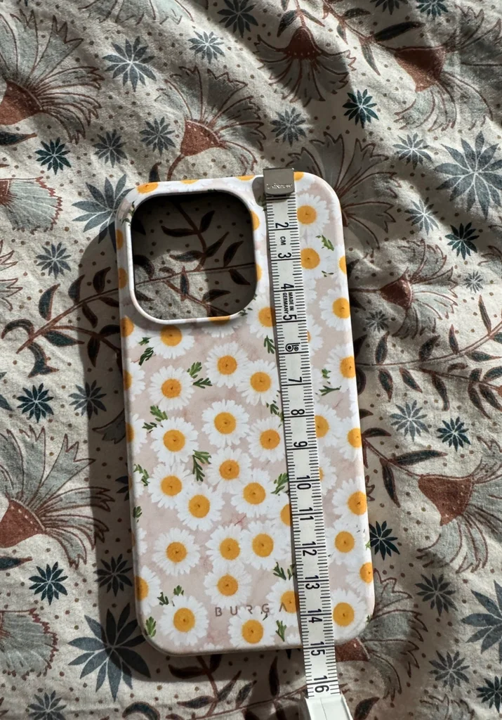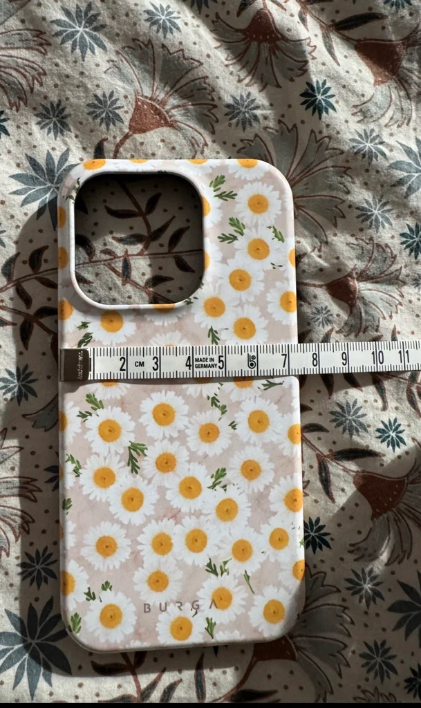 Coque fleurie Burga IPhone 15 pro (dimensions en photo)