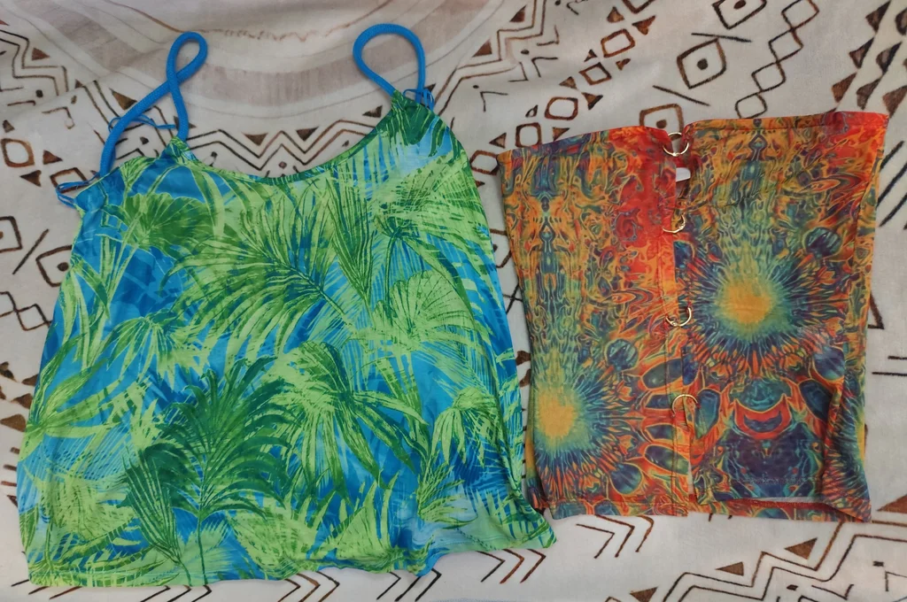 2 petits hauts été 1 vert à bretelles 1 orange bustier neuf | Opla