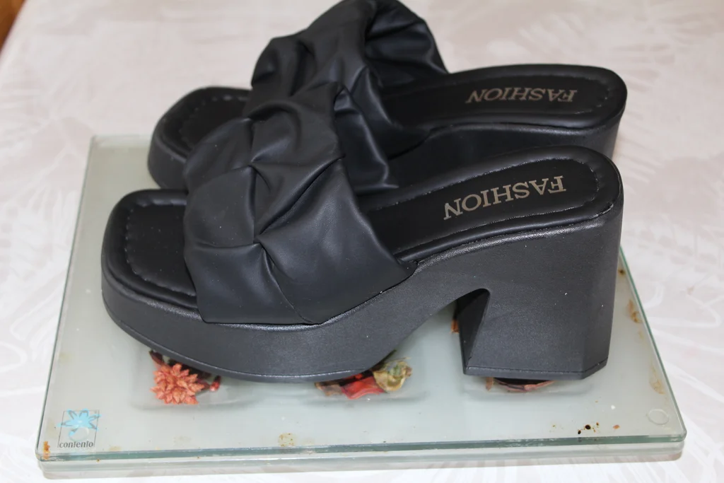 #mlaurie823chaussuresfemme36 mules noires hauteur talon 8 cm hauteur semelle devant 2 cm