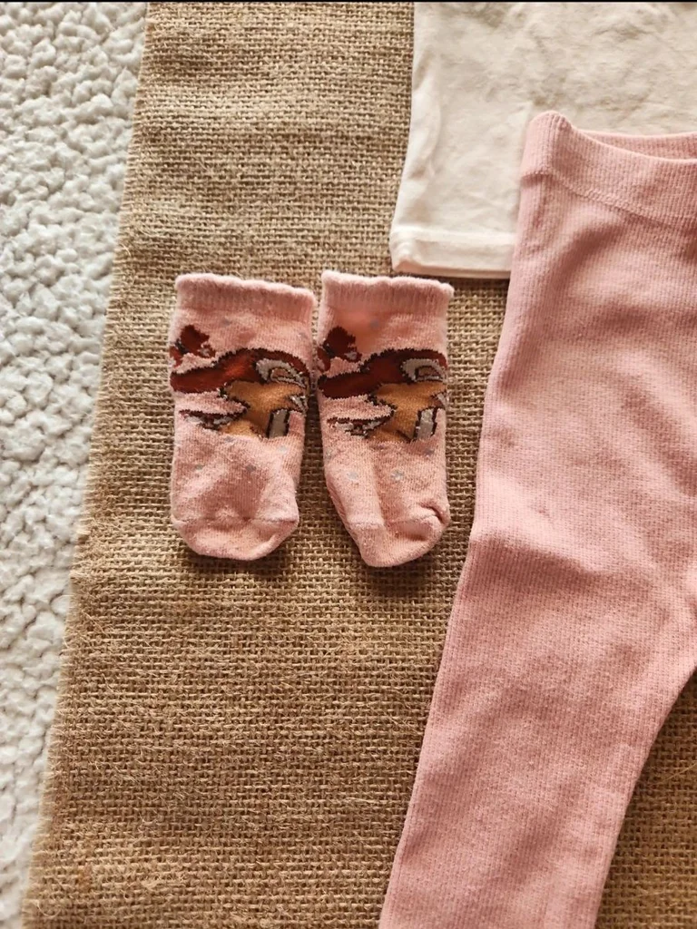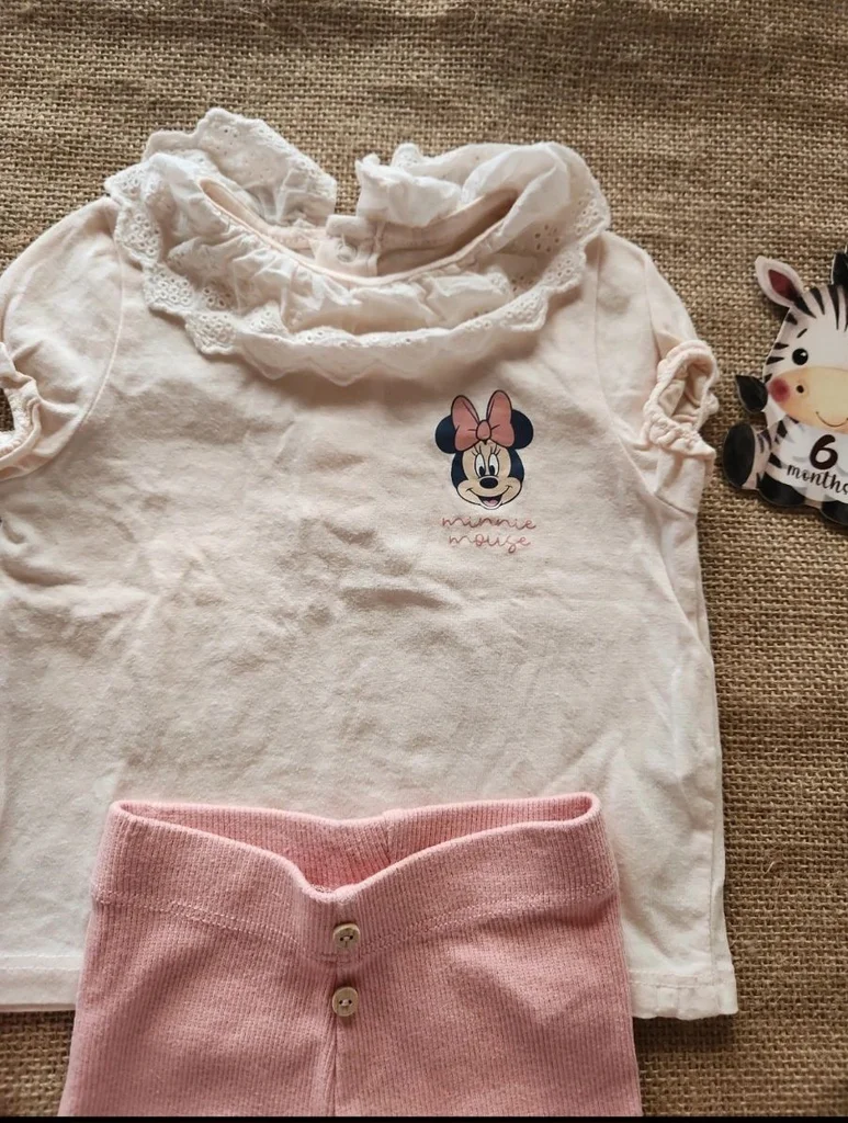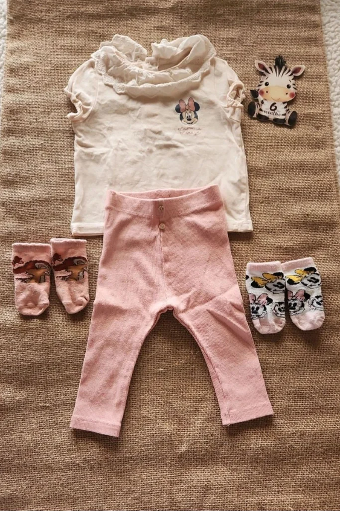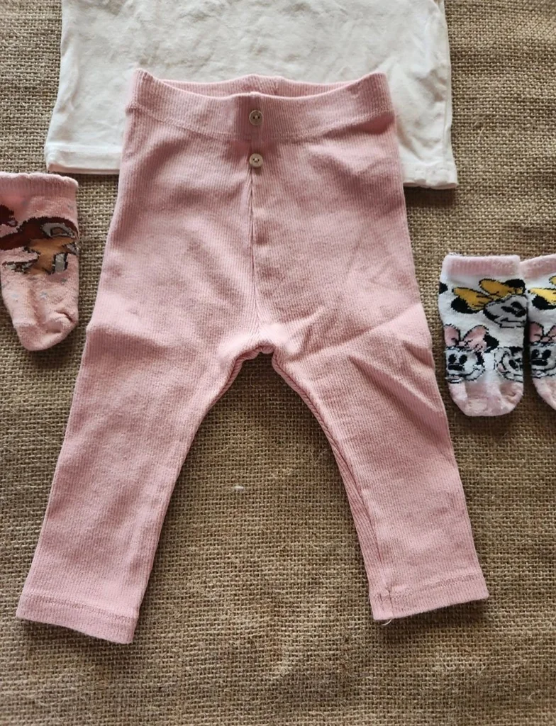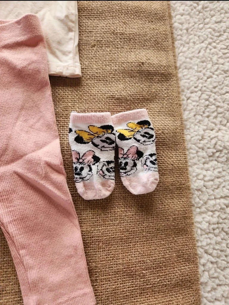 Ensemble accordé par moi-même Petit haut dentelle et motif Minnie marque disney Petit legging avec 2 petits boutons décoratifs marque Kiabi 2 paires de chaussettes disney