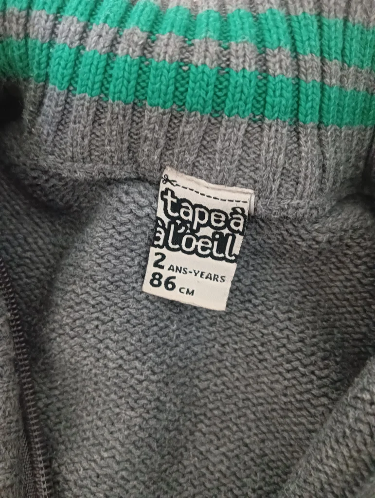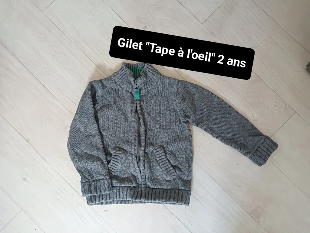🌀 Joli petit gilet taille 2 ans (86cm) garçon. - Marque " Tape à l'oeil" en très bon état. - Fermeture éclair fonctionne parfaitement. - 100% coton