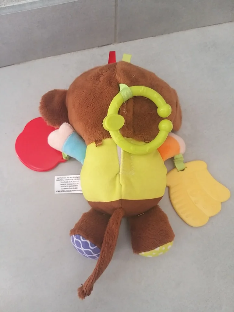 P'tit singe decouvir des matières, fonctionne avec des piles. Peu s'accrocher. Très bon état