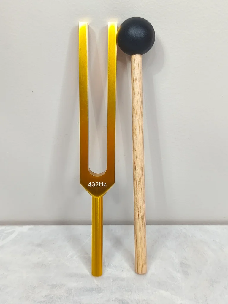 Diapason thérapeutique 432 Hz – Neuf – Méditation / Bien-être Diapason de sonothérapie accordé à la fréquence 432 Hz, réputée pour favoriser l’harmonie, la relaxation et l’équilibre énergétique. Idéal pour : la méditation les soins énergétiques la sonothérapie la relaxation et le bien-être Le diapason produit une vibration claire et durable permettant de créer un moment de calme et de recentrage. Contenu du lot : 1 diapason 432 Hz couleur doré 1 maillet avec tête en caoutchouc 1 pochette de rangement 1 chiffon de nettoyage État : neuf Parfait pour les praticiens de bien-être, thérapeutes ou pour un usage personnel lors de séances de relaxation et de méditation. Envoi rapide et soigné.