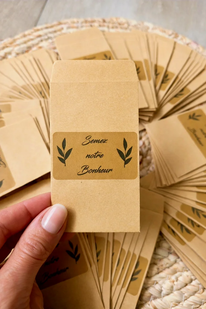 Lot de 100 étuis " Semez notre bonheur" Surplus de mon mariage. ( vendus sans graines) Un cadeau original pour les invités! Très bon état ⚠️ Acheteur sérieux uniquement. 📦 Envoi soigné, pesé et filmé . 🏷 J'essaye d'envoyer le plus rapidement possible