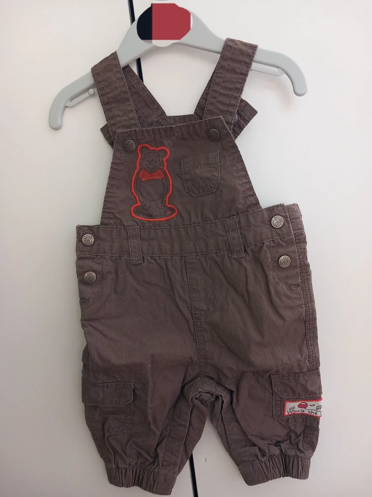 Description État : Très bon état Marque : Disney Taille : 3 mois (62 cm) Couleur : Marron glacé / Taupe Détails de l’article : Matière : Joli velours côtelé fin, très souple et confortable pour bébé. Design : Broderie Winnie l'Ourson avec contour rouge sur le devant. Petits boutons gravés avec le visage de Winnie. Pratique : * Bretelles boutonnées. Boutons pressions sur les côtés pour faciliter l'habillage. Poches style "cargo" sur les jambes pour un look craquant. Chevilles élastiquées pour un bon maintien. Maison non-fumeur 🚭