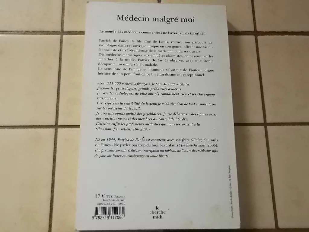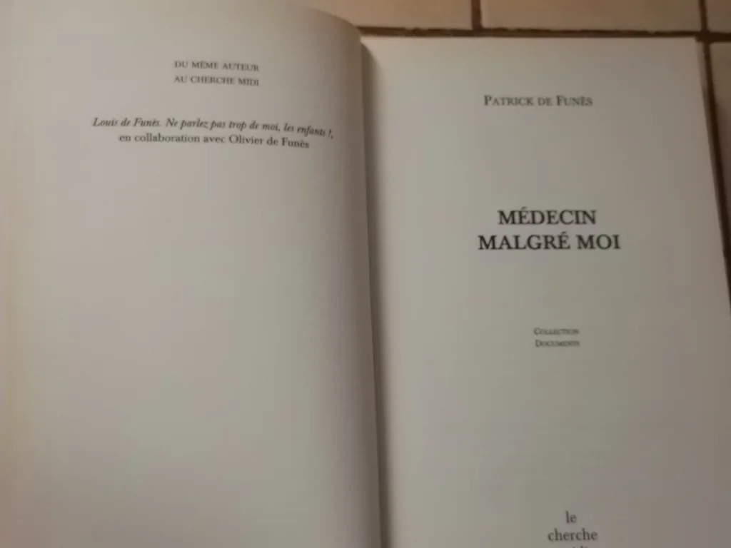 Bonjour, Vends : Livre Médecin malgré moi de Patrick de Funès